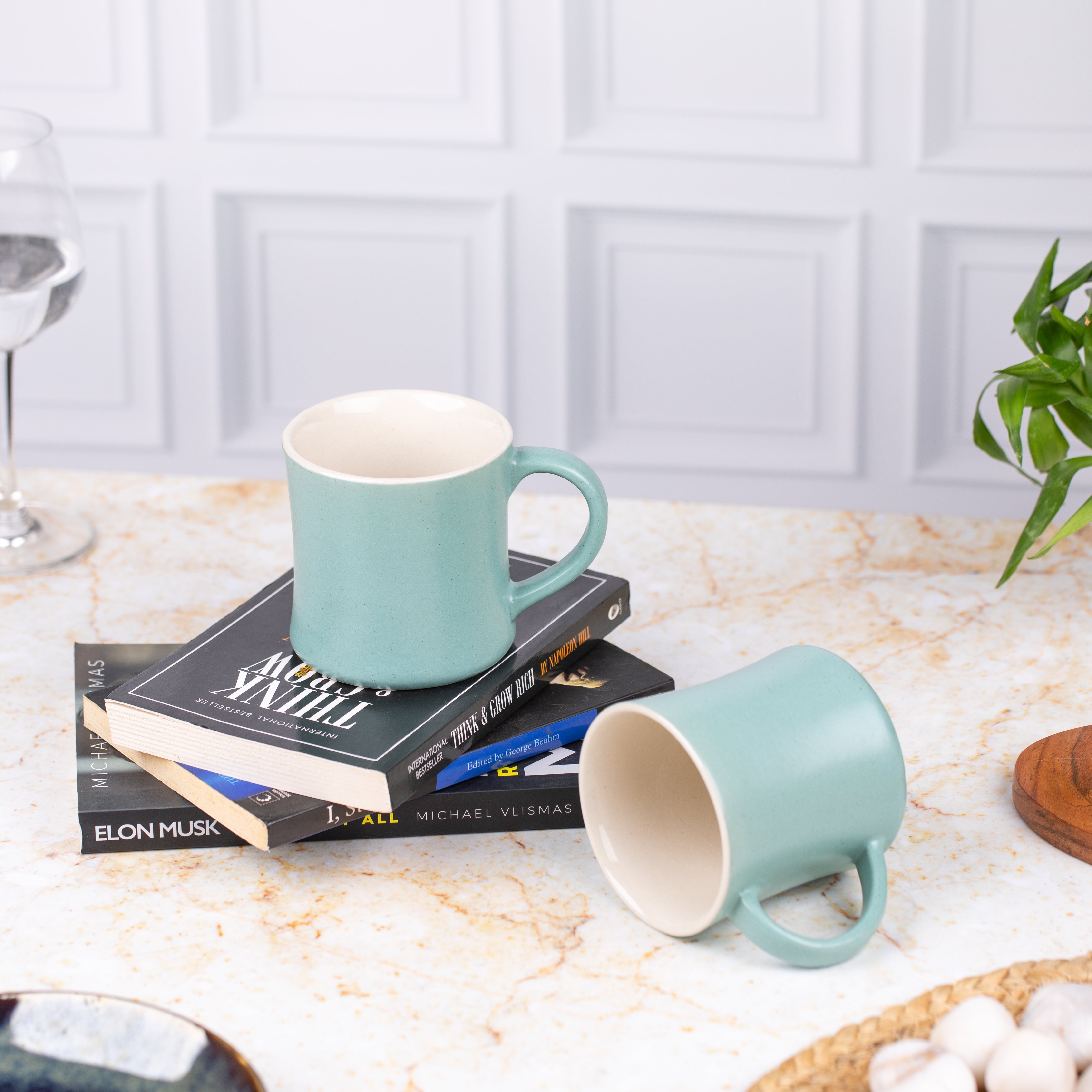 Ceramic Tea Coffee Mugs with Handles Set of 2 | Microwave Safe | Dishwash resistant | Scratch Resistant | Light Blue | H-4.5" D-3"